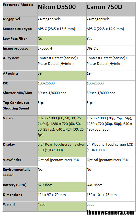 Что лучше: Nikon D5500 или Canon 750D?